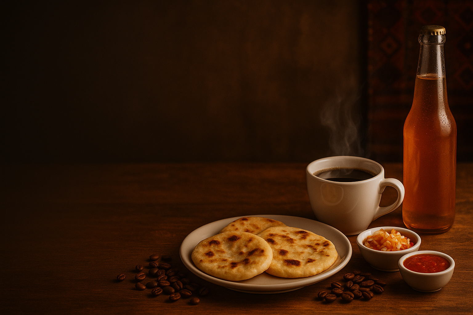 Masa lista, quesillo, chicharrón, frijol, curtido y salsa. Todo para tus pupusas.